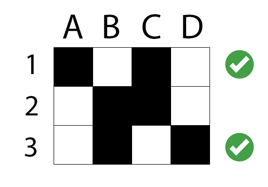 is an exact cover of X. We can also visualize this as a bit matrix where each row represents a subset and each column represents an element in X. Finding an exact cover would be equivalent to finding a set of rows such that each column has only one bit.