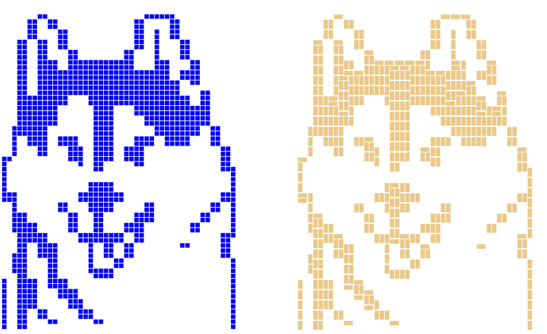 Converting to images and comparing the backtracking and max flow solutions, we see that the backtracking solution is obviously a valid solution and unfortunately the max flow solution is not.